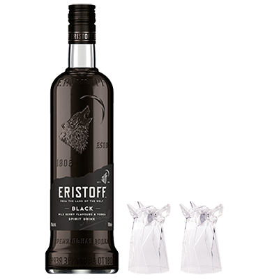 За загарантирано најдобрата забава во твојот живот одбери го овој сет од Eristoff Black вотка со четири пластични чаши за шотови.