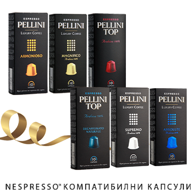 Понудата содржи : Pelini Top Arabica 5 ком (x10), Pellini Decaffeinato Naturale 5 ком (x10), Pellini Magnifico 5 ком (x10), Pellini Supremo 5 ком (x10) , Pellini Armonioso 5 ком (x10) и Pellini Absolute 5 ком (x10).