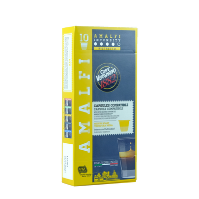 Кафето Vergnano 1882 Амалфи е едно од екслузивната линија на Vergnano кафињата која што се произведува исклучиво за мегународни пазари и е инспирирано и добива форма од убавините на италијанскиот град Амалфи.