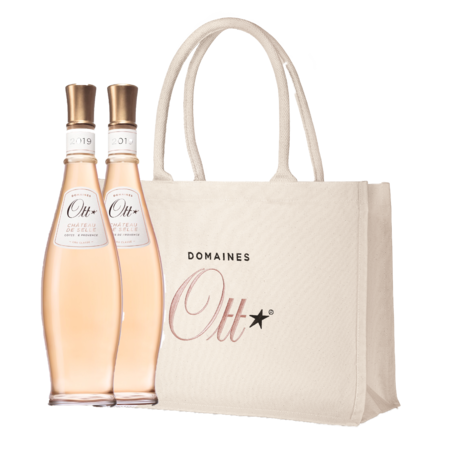 Ведар карактер, ова вино е израз на неговата чиста околина на брегот кон Медитеранот, земја на шкрилци, комплетно ослободена од варовник. Во сорботка со океанот, сувиот воздух на ридовите безрезервното сонце, солената почва овозможува да се дооформи ова единствено, со елегантен карактер и страствено срце.Вино Domaines Ott Rose 2x 0,75 л со подарок торба