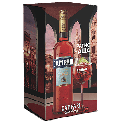Кампари е алкохолен дестилат добиен од инфузија на горки тревки, ароматични растенија и овошја соединети во алкохол и вода. Многумина се обиделе да го погодат точниот број на состојки: некои велат 20 или 60, но други велат дури 80. Сет со брендирана чаша за уште поголемо уживање на Campari & Tonic коктелот.