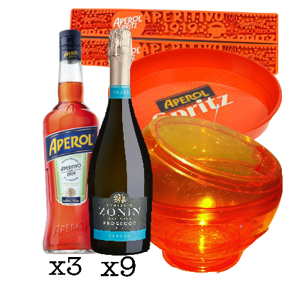 Аперол 1Л х3, Зонин просеко 0,75Л х9, Аперол гума за шанк х2, Аперол метален послужавник х1, Аперол кибла за мраз х1