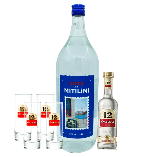 Прекрасното узо Митилини е дестилирано на островот Лезбос, и е 100% дестилат. Со својот мазен вкус нема да ве остави рамнодушни. Сега достапен и во комбинација со узо 12 и 4 чаши подарок