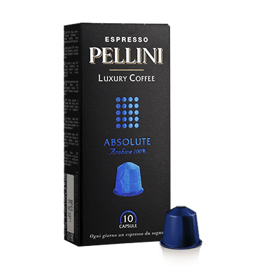 Со благородна арома и вкус, Pellini Absolute е сместен во категоријата на луксузно Италијанско еспресо. Нотите на лешник го прават посебно и различно од целиот асортиман.